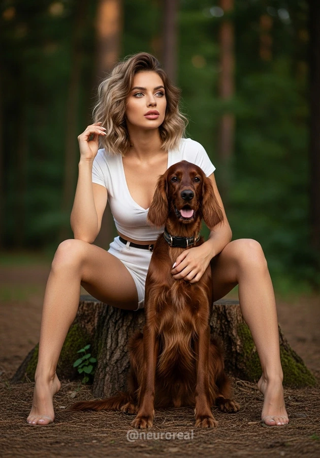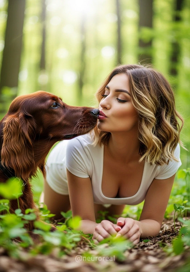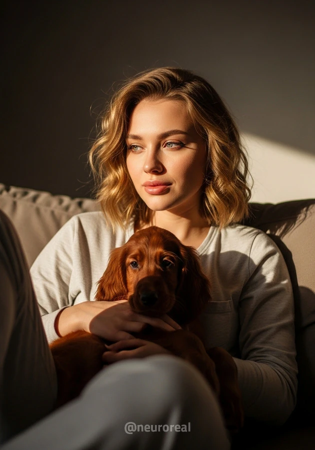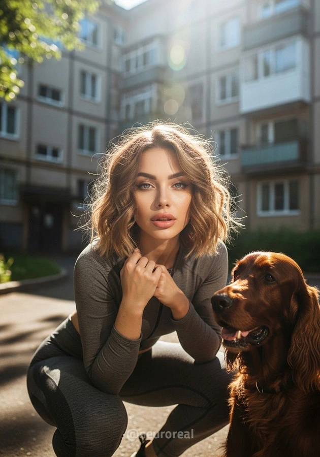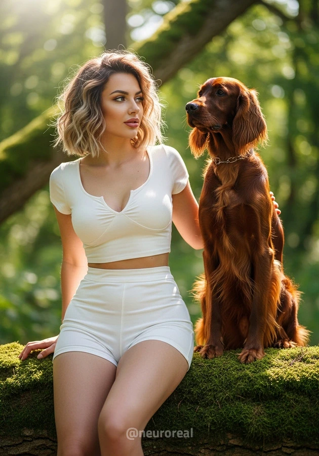 "Камила на опушке леса, в тёплых лучах солнца, пробивающихся сквозь листву, рядом со своим спутником — милой собакой, чьи глаза полны преданной любви и тепла. В каждом их взгляде, в каждой искренней улыбке чувствуется душевная связь, словно они понимают друг друга без слов. Это не просто кадры — это тёплая история о дружбе, о доверии и о красоте моментов, наполненных простой, но глубокой любовью."