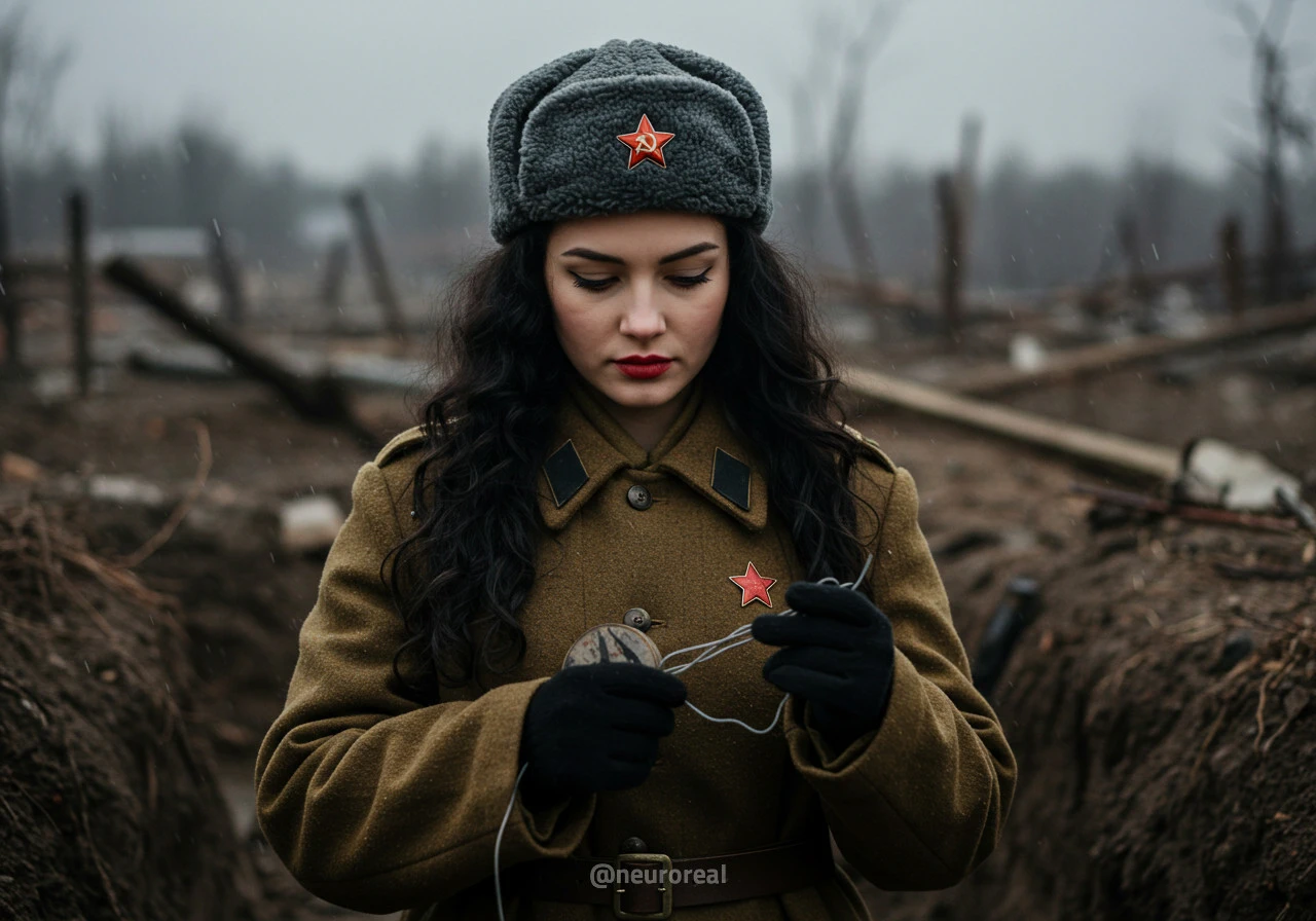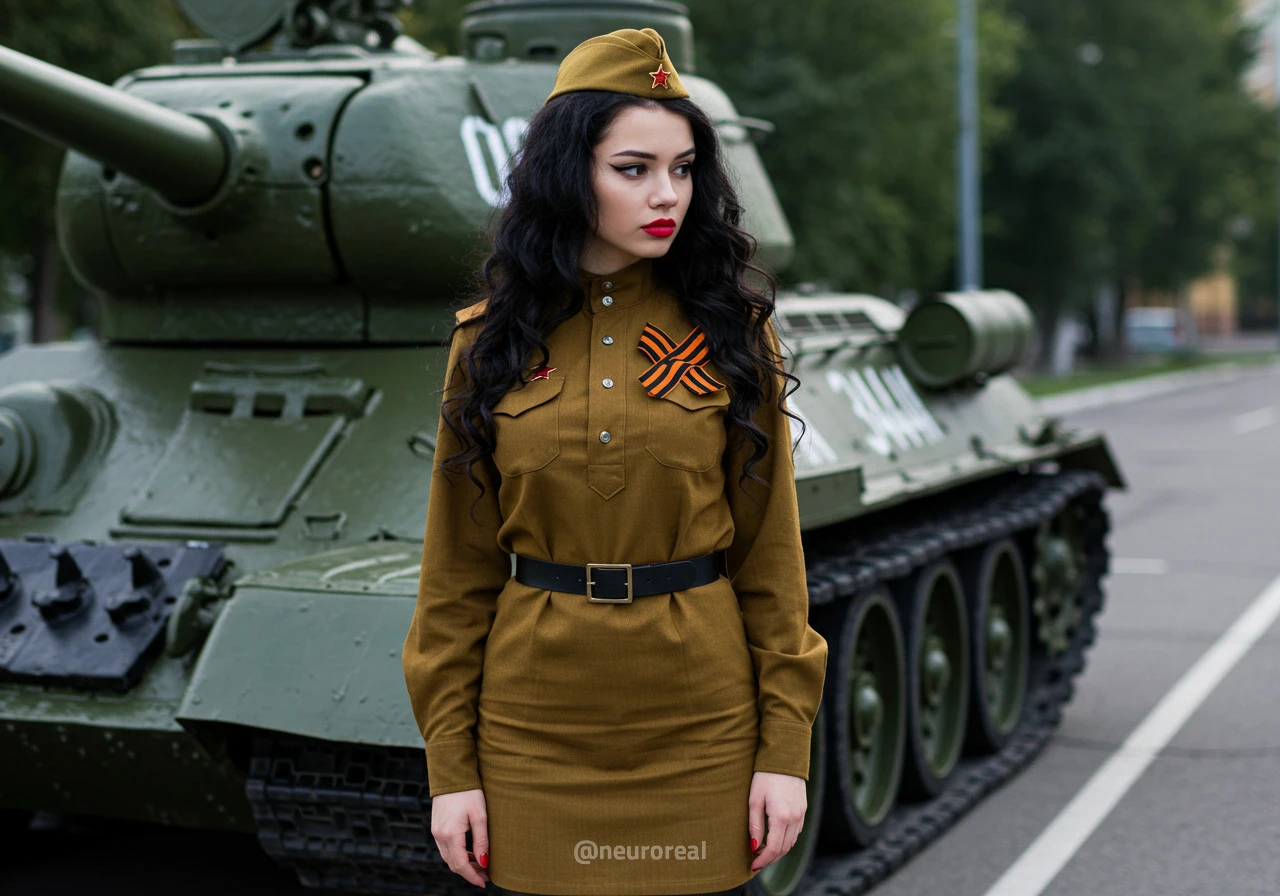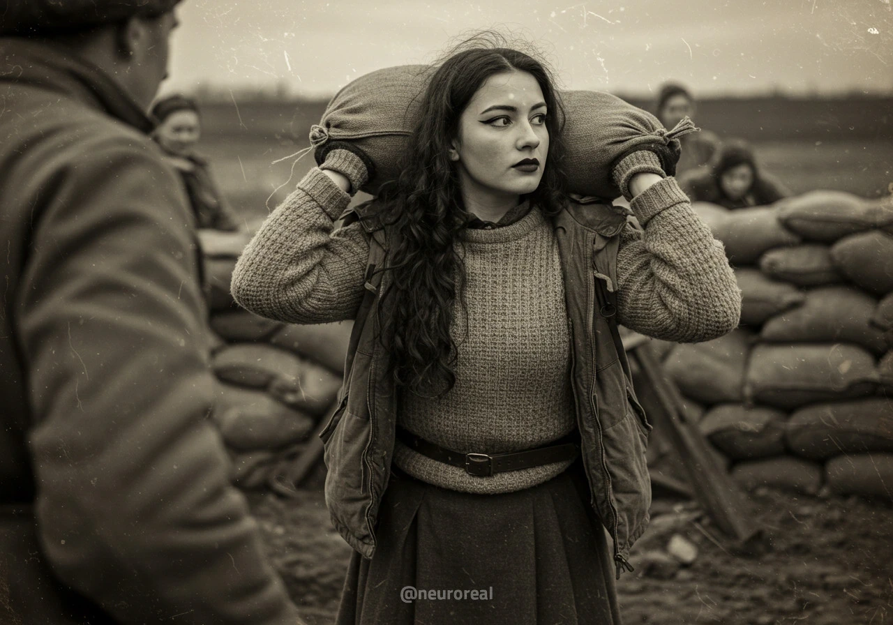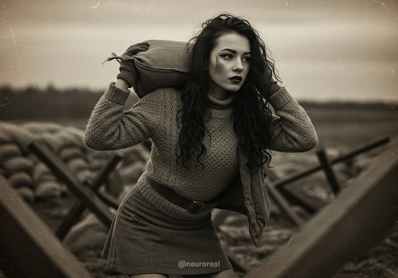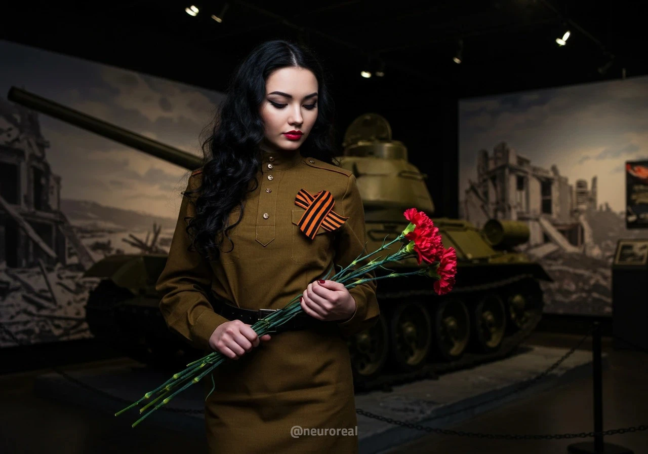 "Фотосессия посвящена событиям Второй мировой войны, отражающим напряжённость и драматизм эпохи. Через образы молодой героини передаются эмоции, решимость и мужество в условиях военного конфликта. Снимки реконструируют историческую атмосферу и подчёркивают значимость пережитого времени."