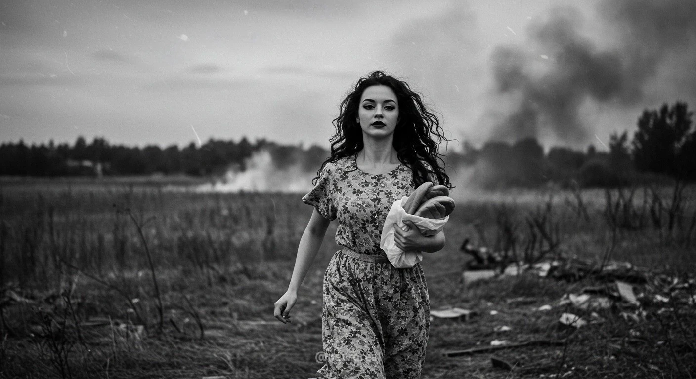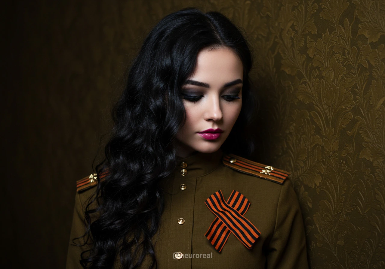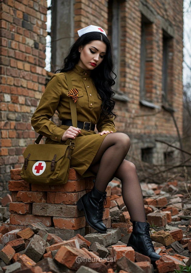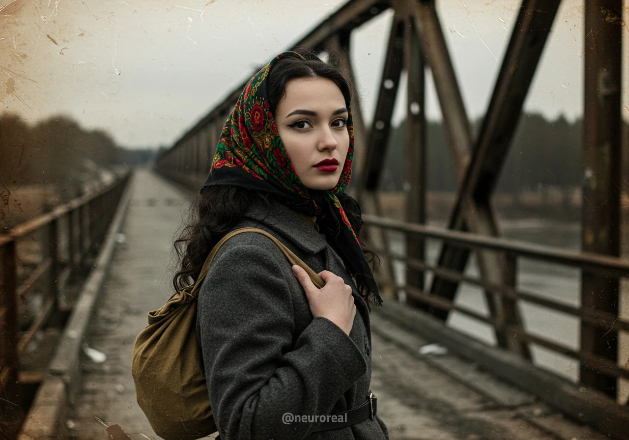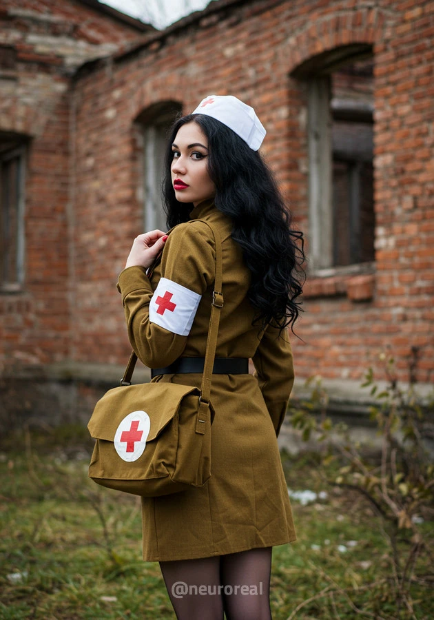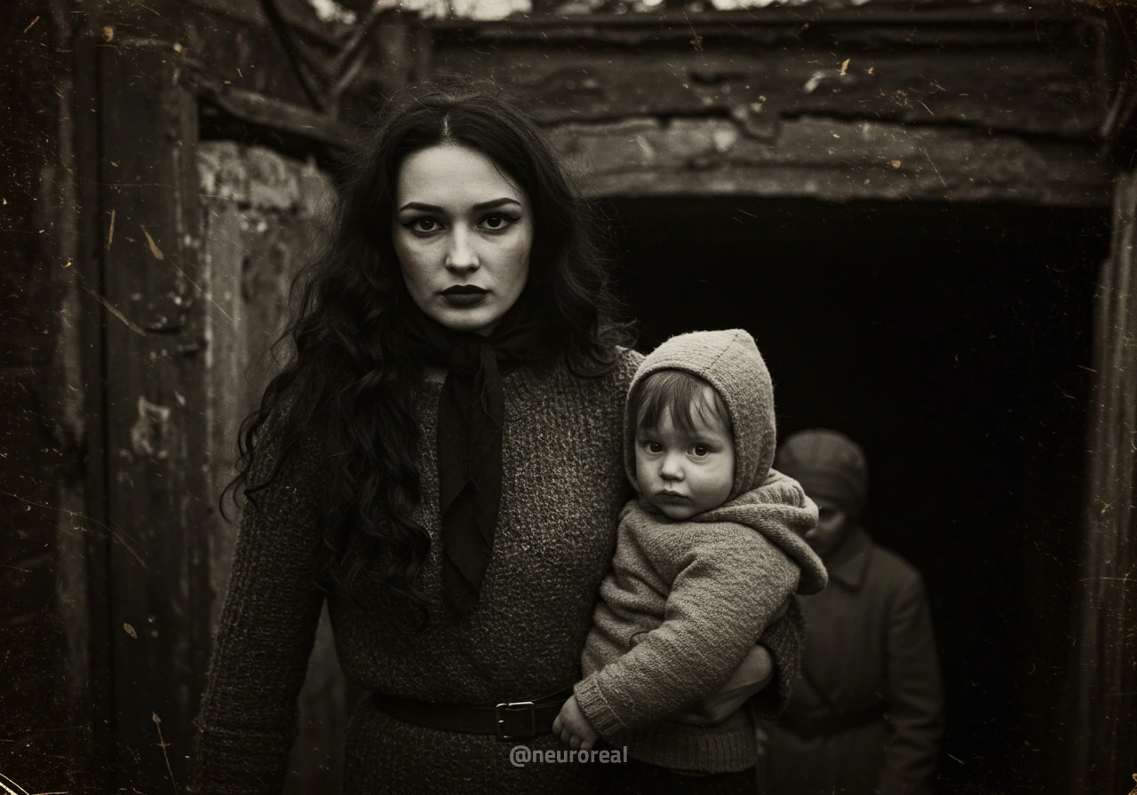 "Фотосессия посвящена событиям Второй мировой войны, отражающим напряжённость и драматизм эпохи. Через образы молодой героини передаются эмоции, решимость и мужество в условиях военного конфликта. Снимки реконструируют историческую атмосферу и подчёркивают значимость пережитого времени."