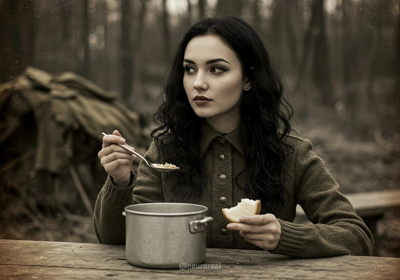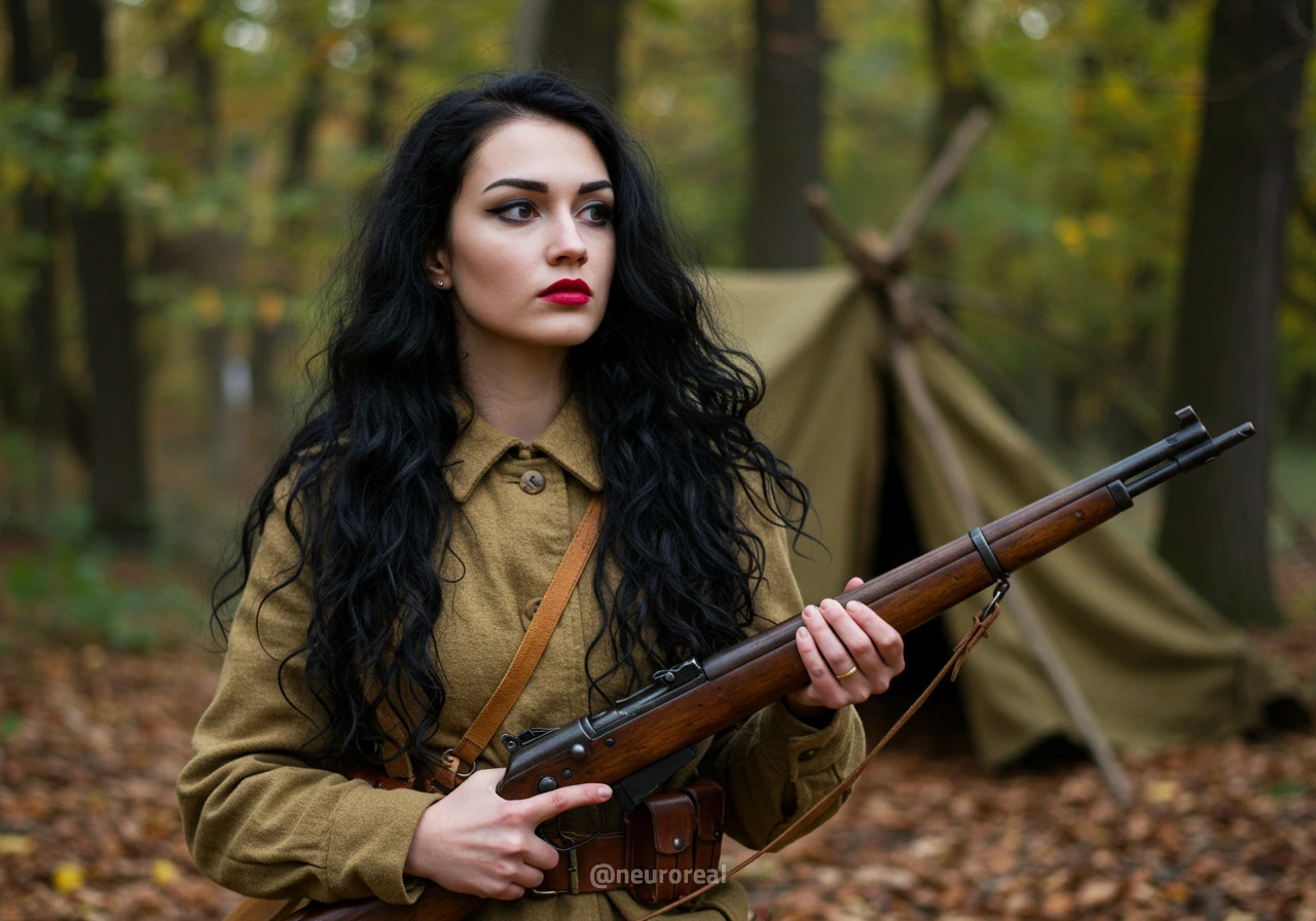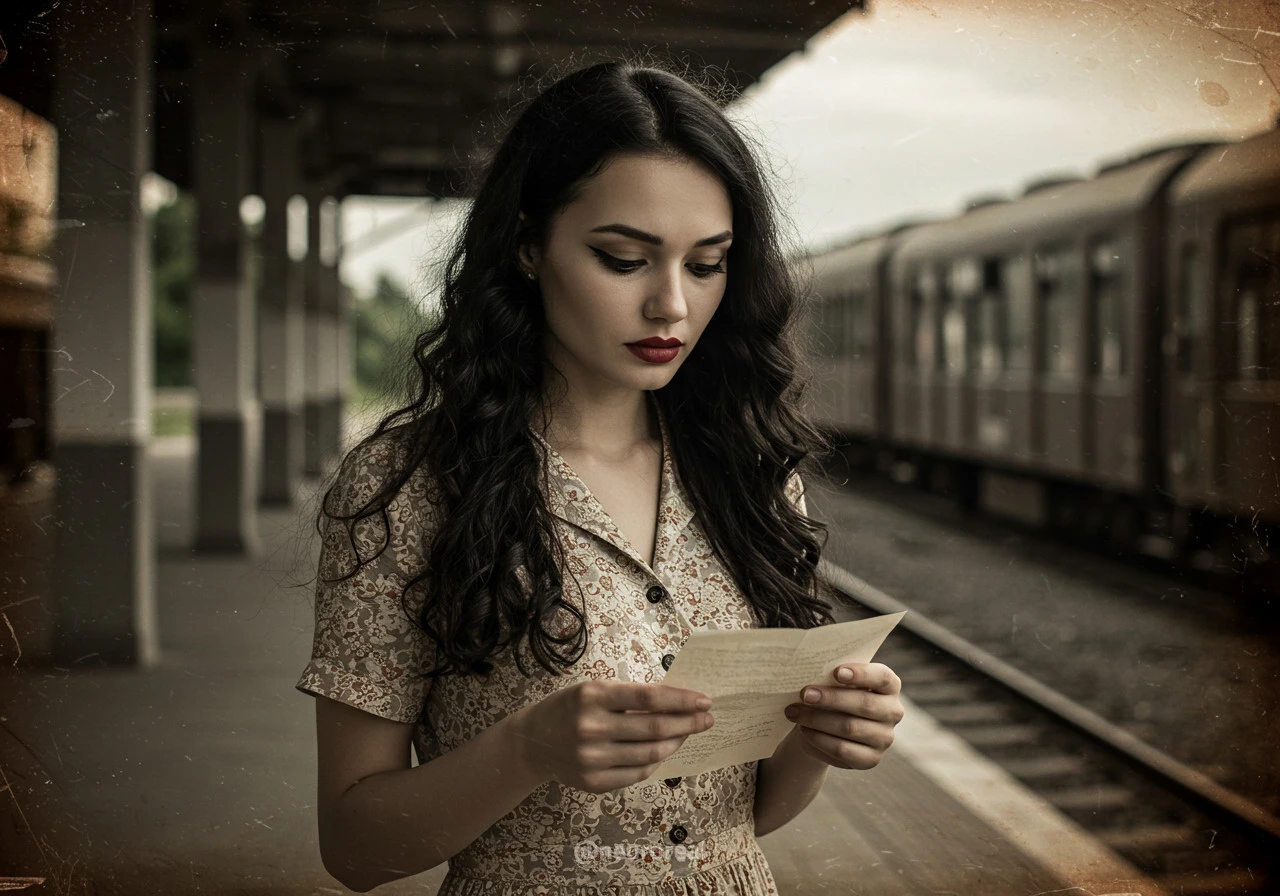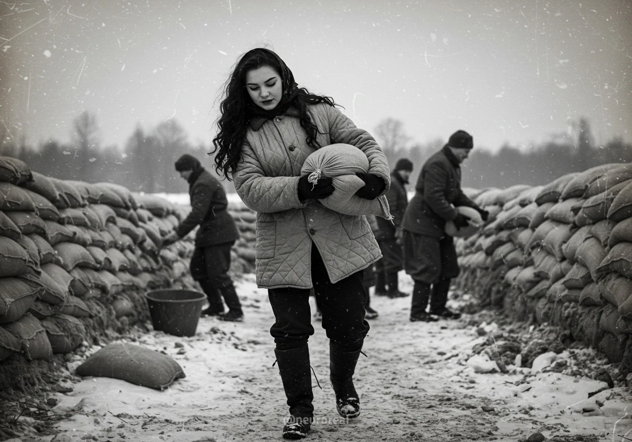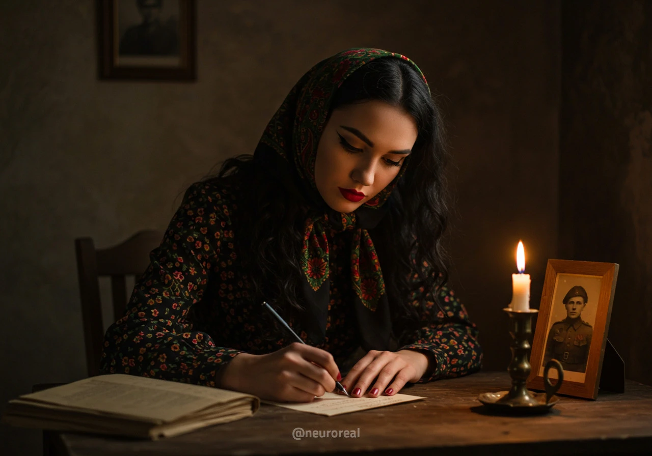 "Фотосессия посвящена событиям Второй мировой войны, отражающим напряжённость и драматизм эпохи. Через образы молодой героини передаются эмоции, решимость и мужество в условиях военного конфликта. Снимки реконструируют историческую атмосферу и подчёркивают значимость пережитого времени."