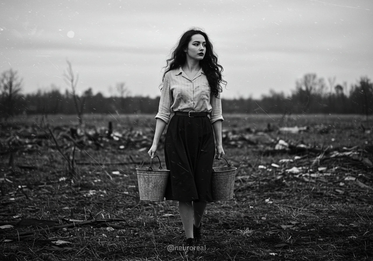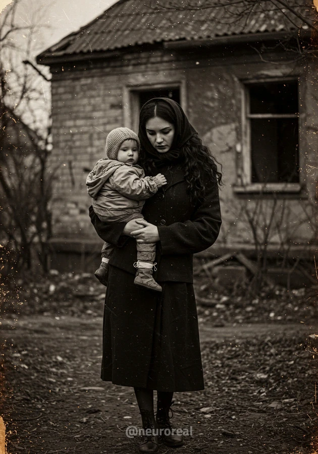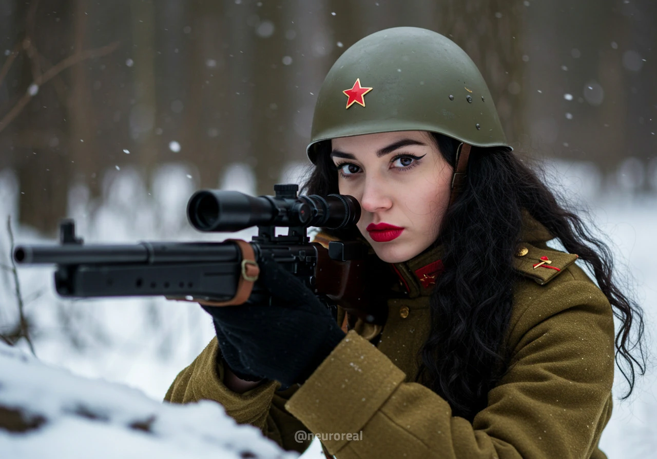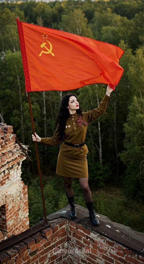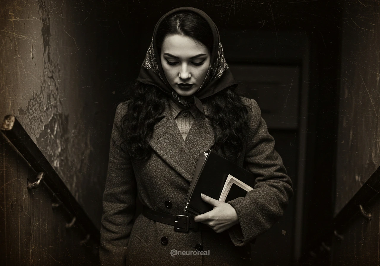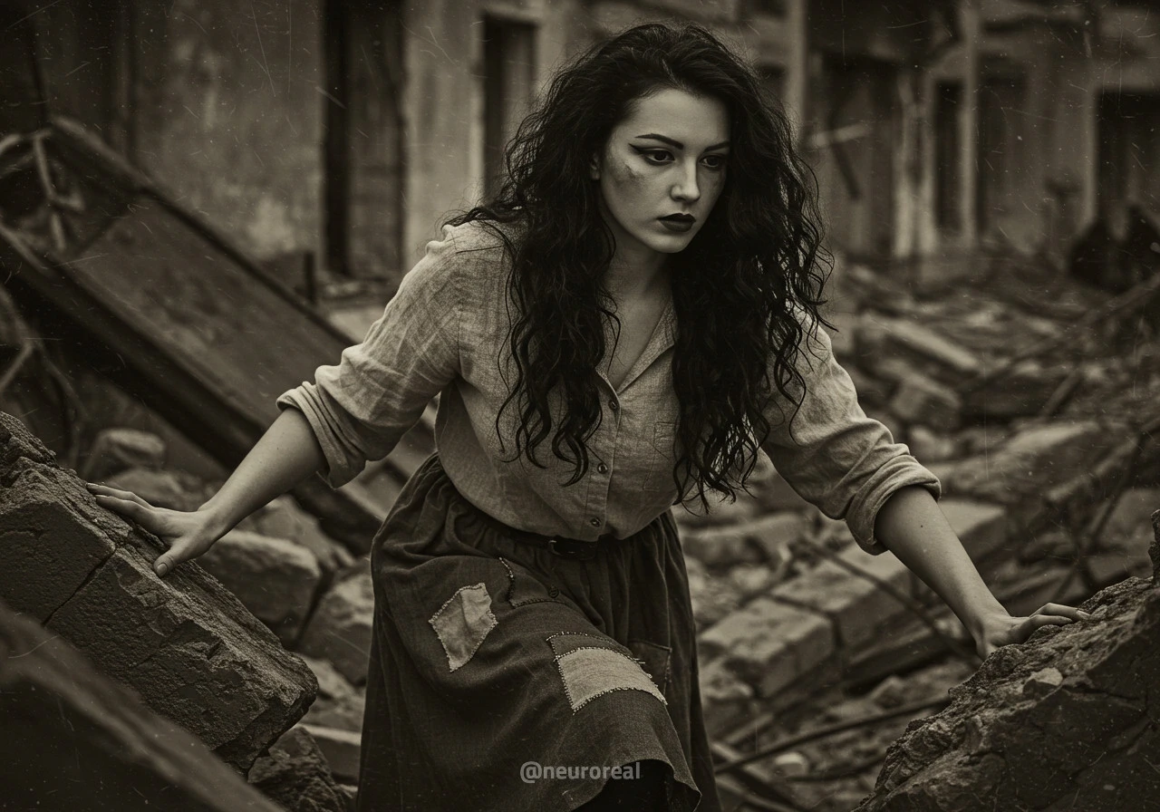 "Фотосессия посвящена событиям Второй мировой войны, отражающим напряжённость и драматизм эпохи. Через образы молодой героини передаются эмоции, решимость и мужество в условиях военного конфликта. Снимки реконструируют историческую атмосферу и подчёркивают значимость пережитого времени."