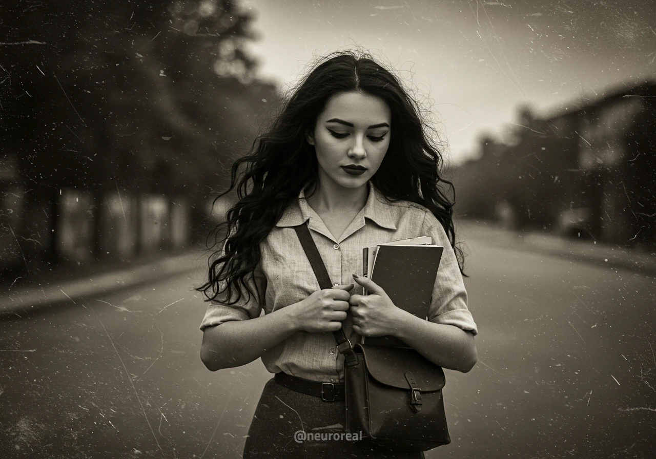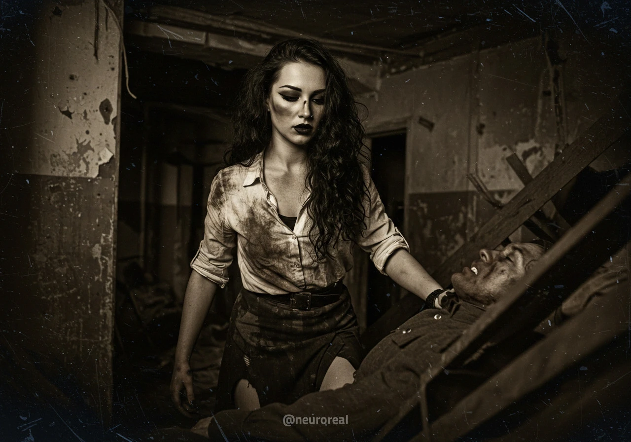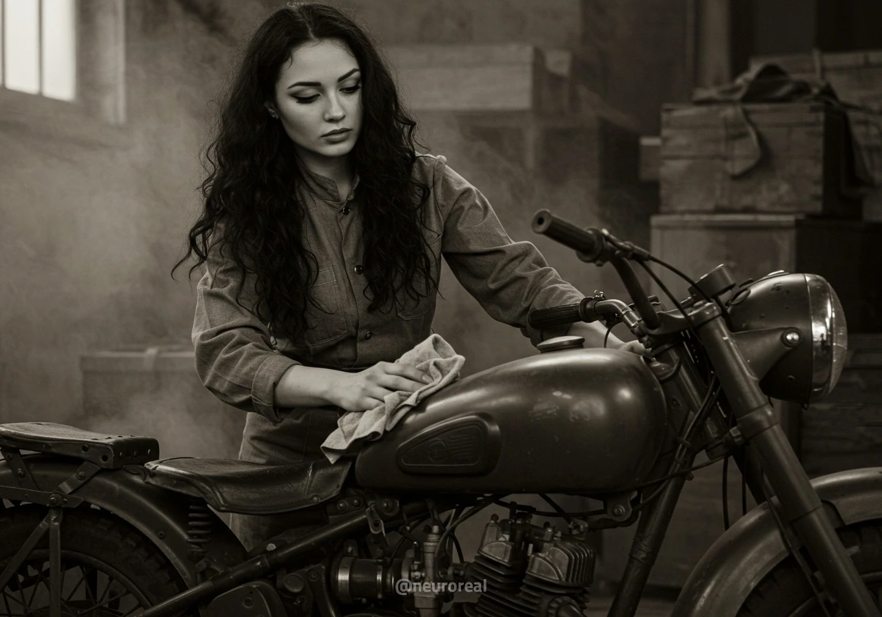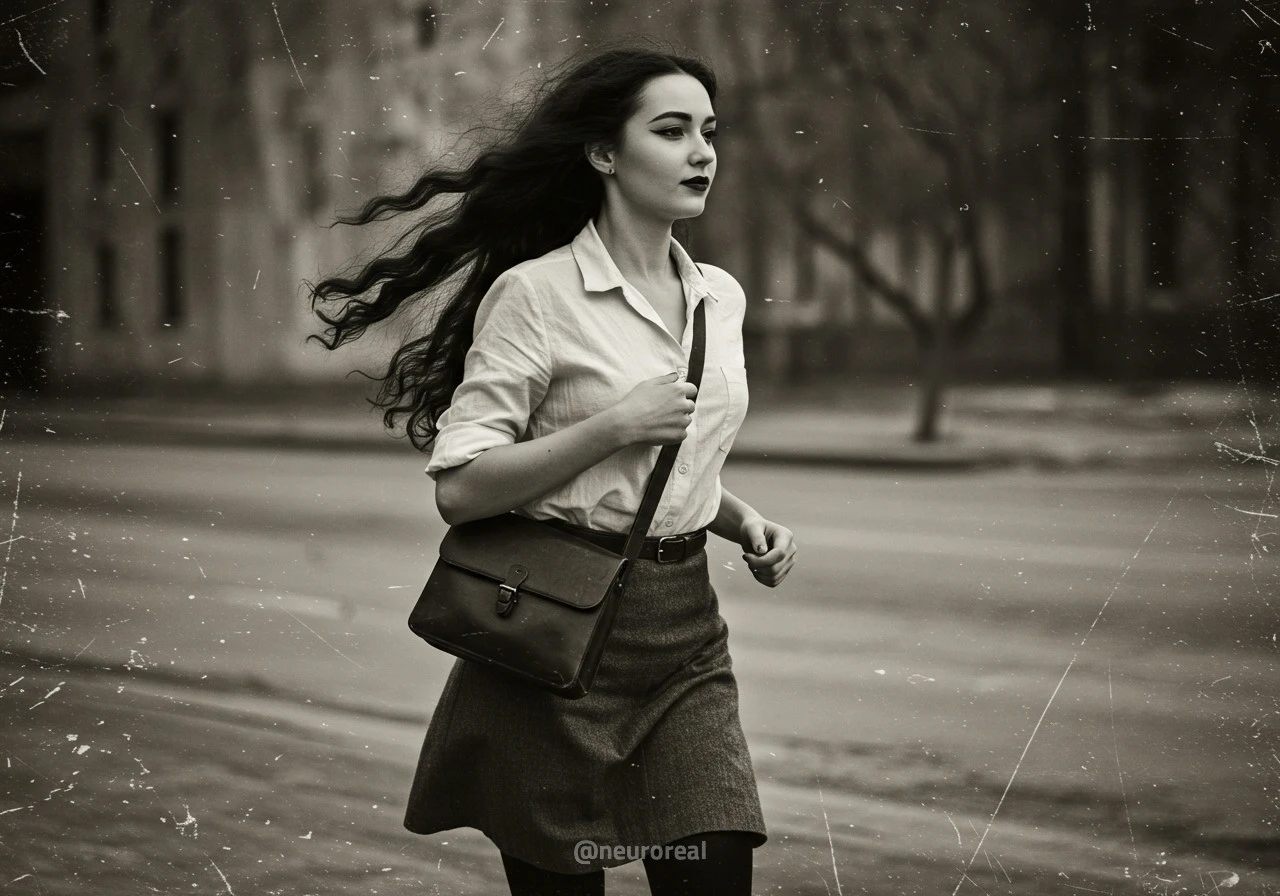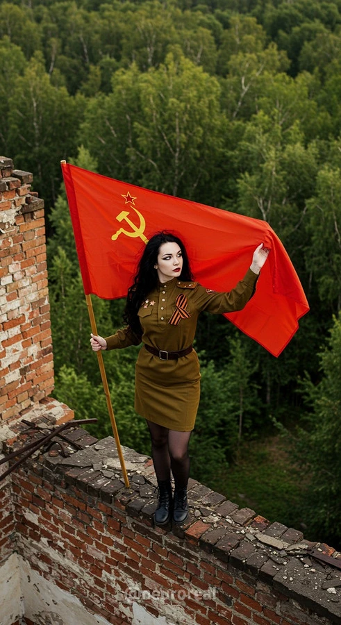 "Фотосессия посвящена событиям Второй мировой войны, отражающим напряжённость и драматизм эпохи. Через образы молодой героини передаются эмоции, решимость и мужество в условиях военного конфликта. Снимки реконструируют историческую атмосферу и подчёркивают значимость пережитого времени."