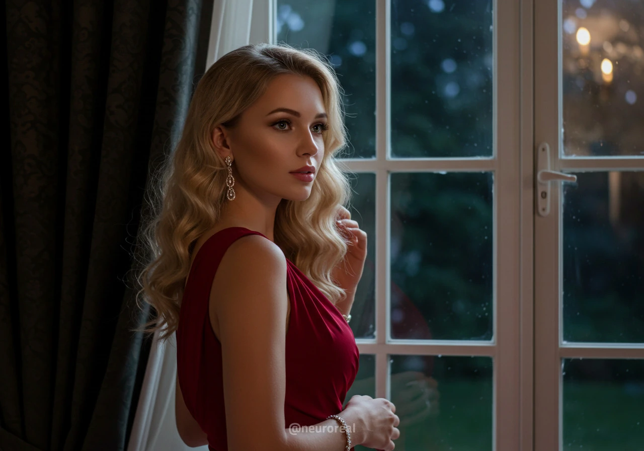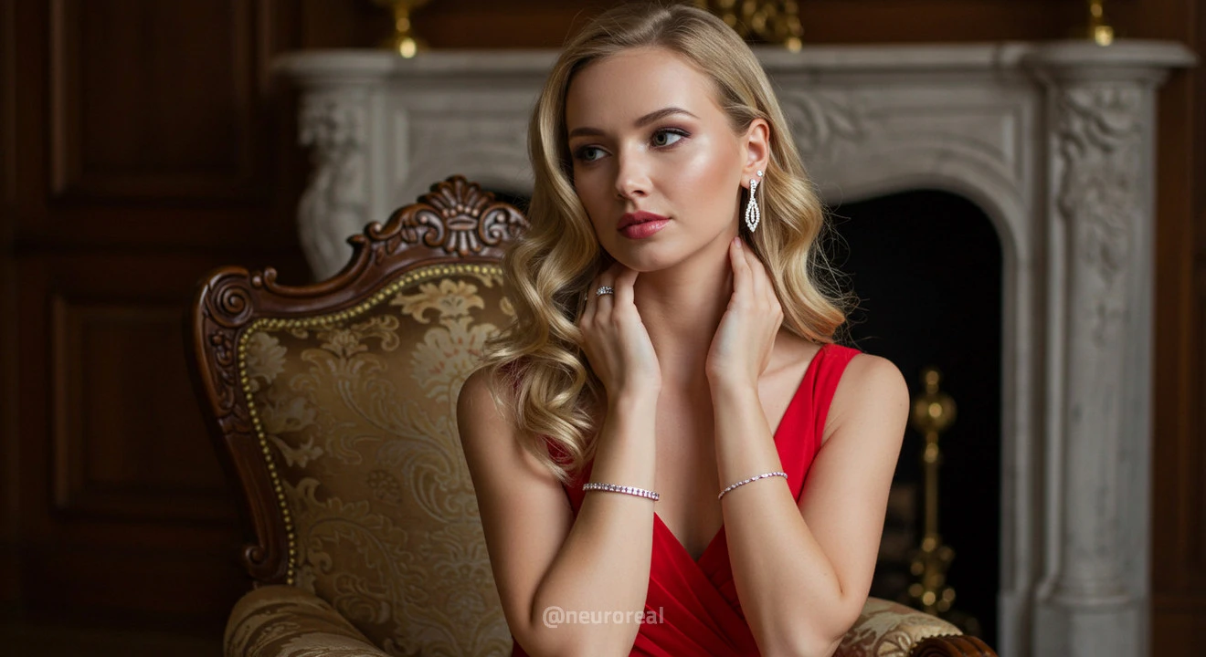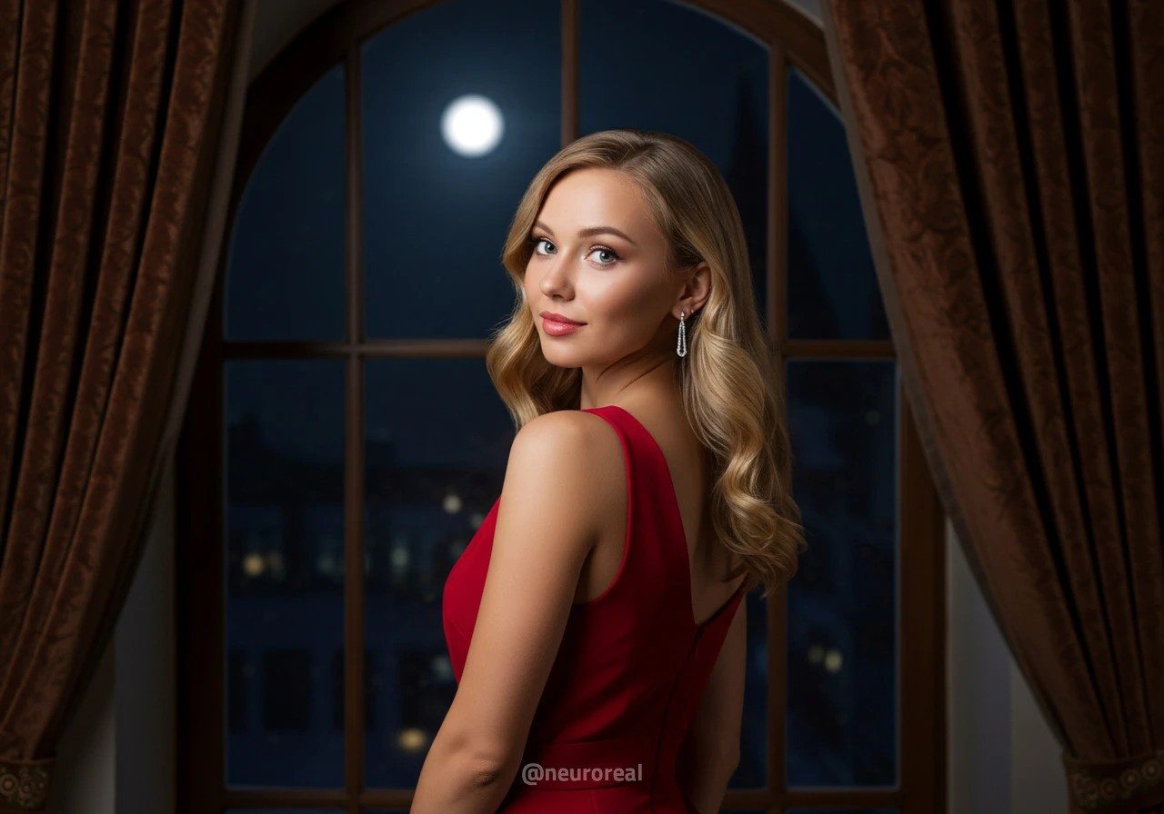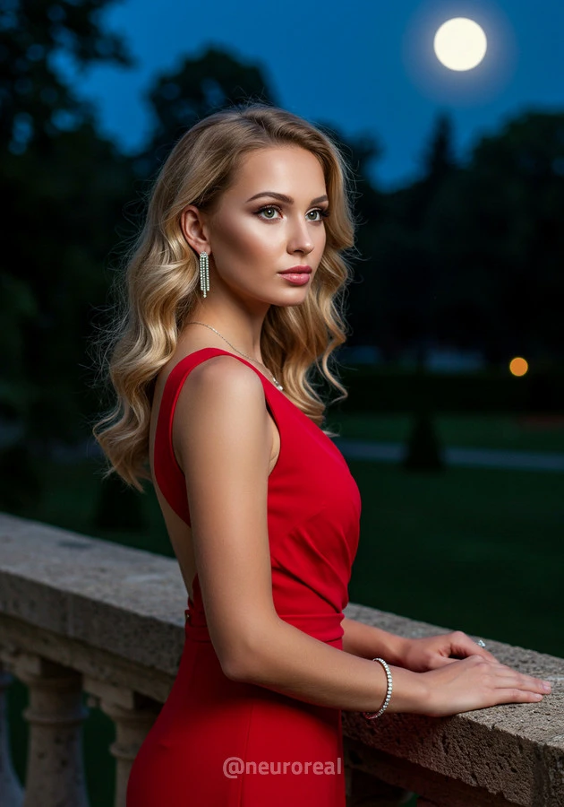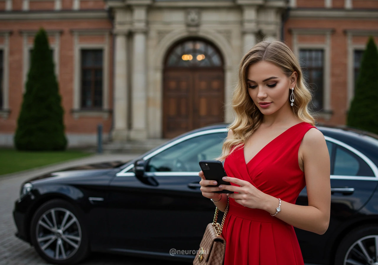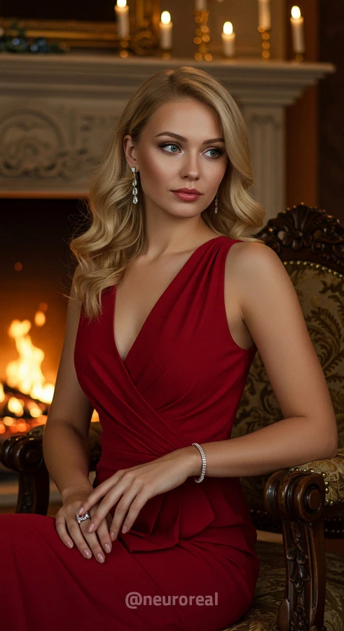 "Фотосессия переносит зрителя в роскошь XIX века, где девушка в красном платье становится ярким акцентом среди антикварных интерьеров замка. Среди гостей за ужином при свете люстр или на балу под мелодии вальса она соединяет эпохи, излучая элегантность и уверенность."