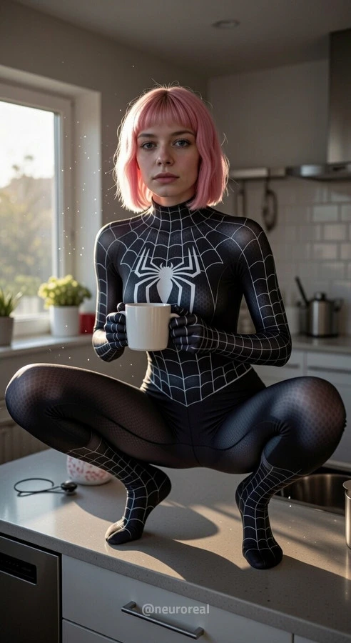 "Перевоплощение в любимую героиню получилось по-настоящему живым и естественным. Тонкий костюм мягко очертил фигуру, добавив привычному домашнему образу капельку супергеройского обаяния и легкой дерзости. Было удивительно почувствовать, как знакомая комната вдруг наполнилась эстетикой комиксов, а обычное селфи превратилось в маленькую личную историю.
