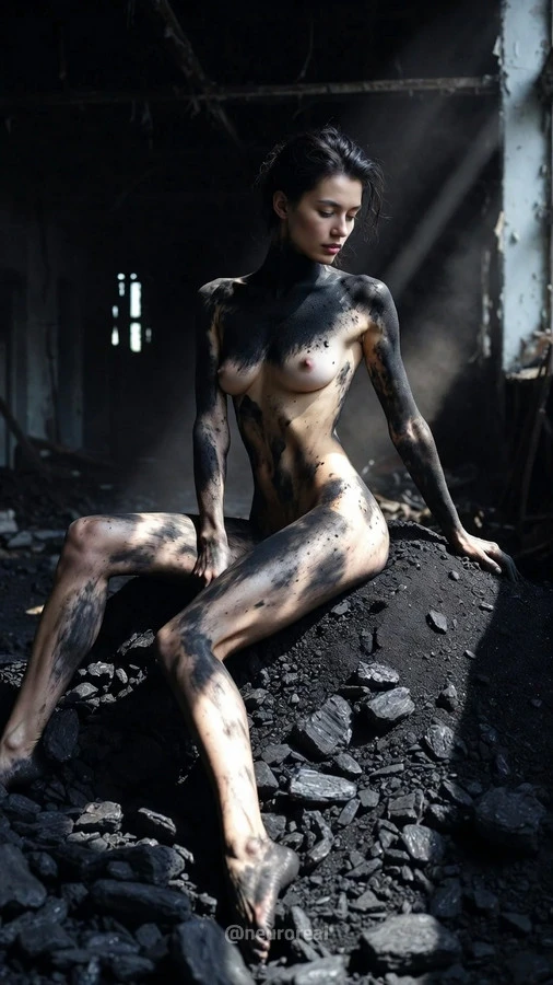 Пространство оживает в деталях: застывшая конвейерная лента и пустые вагонетки хранят молчание, пока глубокие тени рассыпаются по залежам угля. Модели в этом царстве холодного металла и пыли наполняют эстетикой заброшенное производство, создавая атмосферу магнетического влечения. Это история о красоте, которая расцветает там, где время остановилось, а хаос механизмов подчинился грации женского тела."