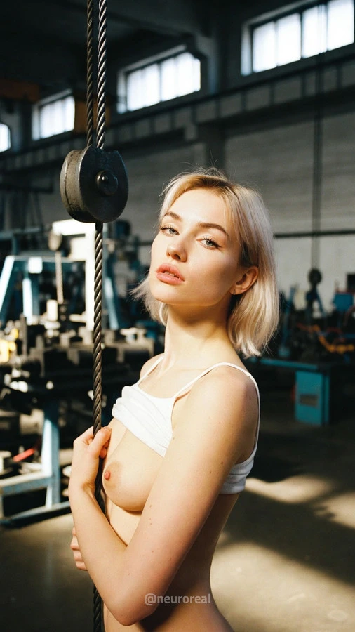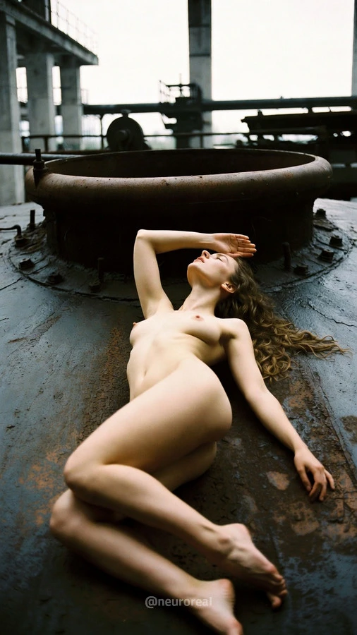 "Смелый диалог между хрупкой женственностью и грубой мощью индустриального прошлого. На фоне покрытых рыжей ржавчиной станков и хитросплетений старых труб нежная кожа кажется особенно уязвимой и притягательной. Матовый блеск тяжёлых тросов и разлитый мазут подчёркивают изящество линий, превращая мрачные цеха в монументальные декорации для подлинной страсти.